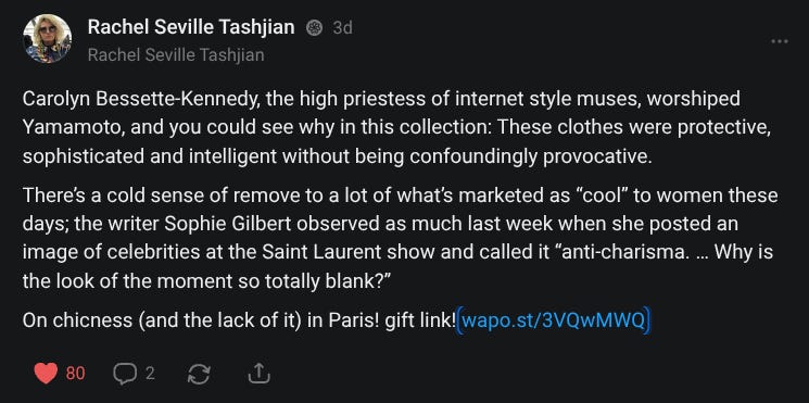 “Perhaps the constant desire for change in fashion can be subscribed to our searching for the fuller image of God missing within us.” So true, but you might be the only fashion writer on Substack willing, or having the understanding, to say that out loud. Going to mull on this quote….