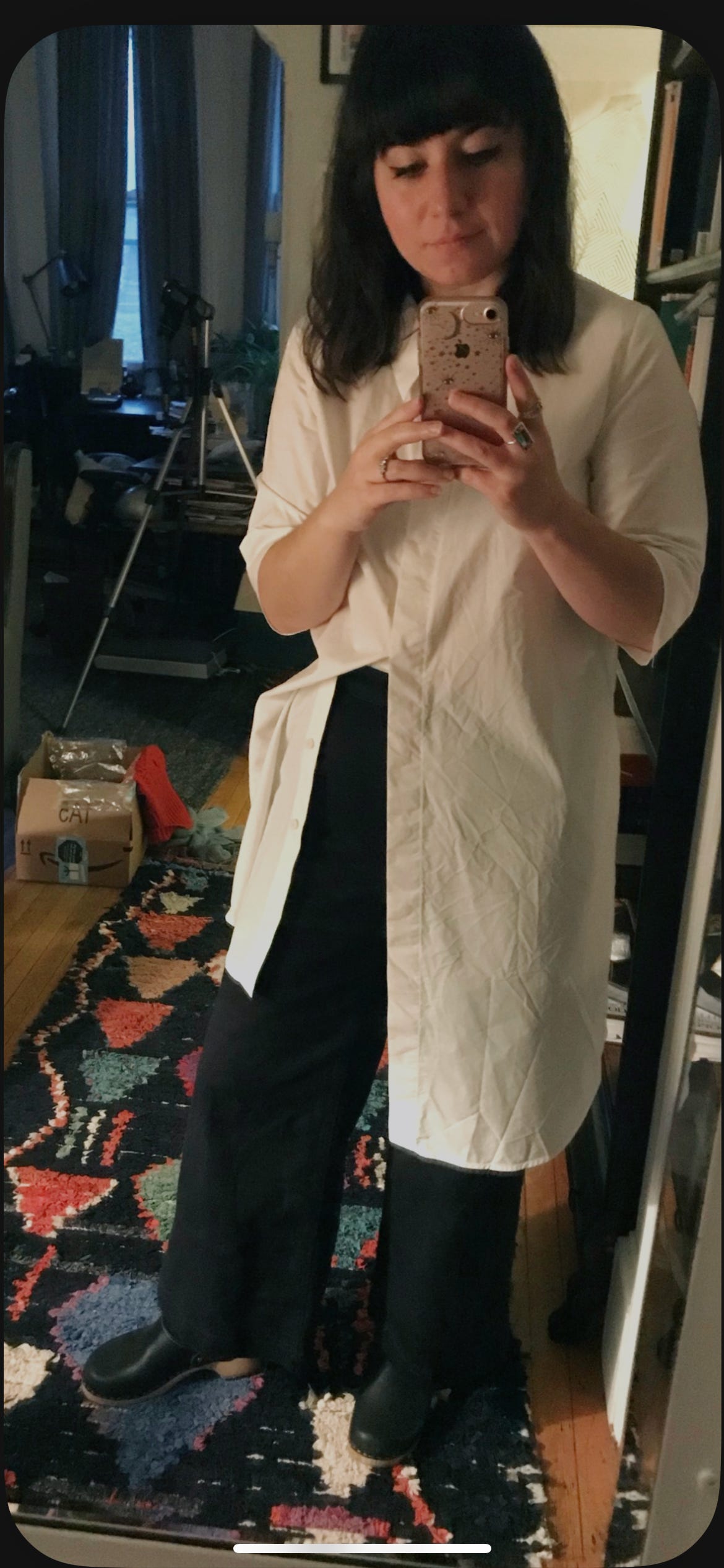 I think a lot of our contemporary Sameness begins with the Olsens and the pervasiveness of The Row to create not just clothing but “looks,” as styling can often be replicated without the hefty price tag. The above image was taken in 2019 and inspired by The Row, but replicated with pieces from Cos, Everlane, and Mia. I remember feeling a little embarrassed as I headed into work that day. Would this dress, worn as super-long, over-sized shirt read too frumpy? Would anyone get it? Now I’m asking why this outfit feels right, six years on? And I think I can credit the current Sameness we are experiencing, at least on Substack and in fashion media.